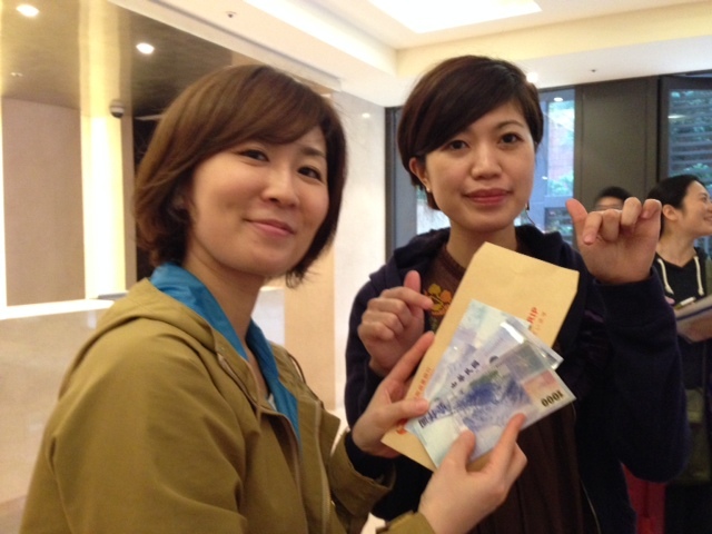 私たちは、旅のあいだ使うお金を 「3人の共通サイフ」から 出すことにしています。 毎朝、ふだん経理をやっている ジャンボが集めます。