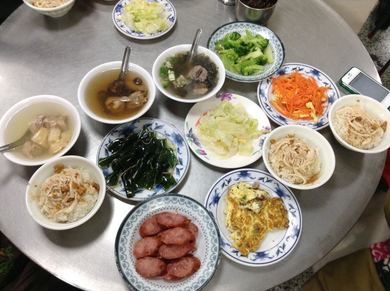 うながされるまま指をさし、 鶏肉ルーローファンも お店の人が察してくれて3つ出てきて、 スープもおいしいというので頼んで 気づけばこのボリューム。