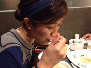 スガノが 杏仁豆腐を食べる。