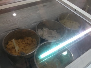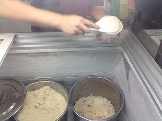 看板メニューの果実乗せプラムアイスと、 読者のかたの定番を真似っこして パイナップルとピーナッツのアイス (ハーフ&ハーフ)を 注文しました。