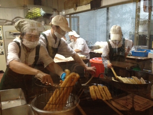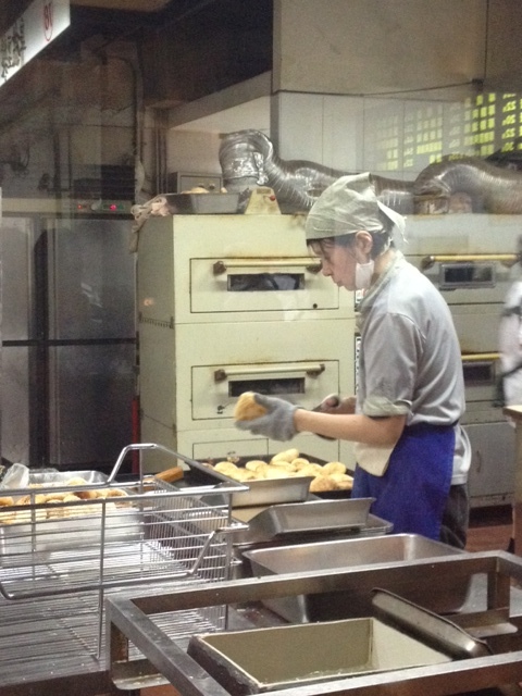 ガラス越しに、 おいしそうなものたちが どんどん作られてゆく。