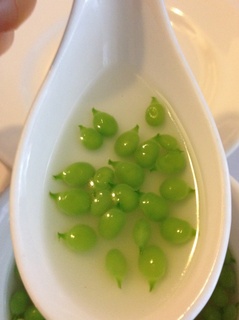 プチプチの ちいさなグリーンピースは えんどう豆みたいなもの。