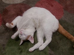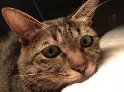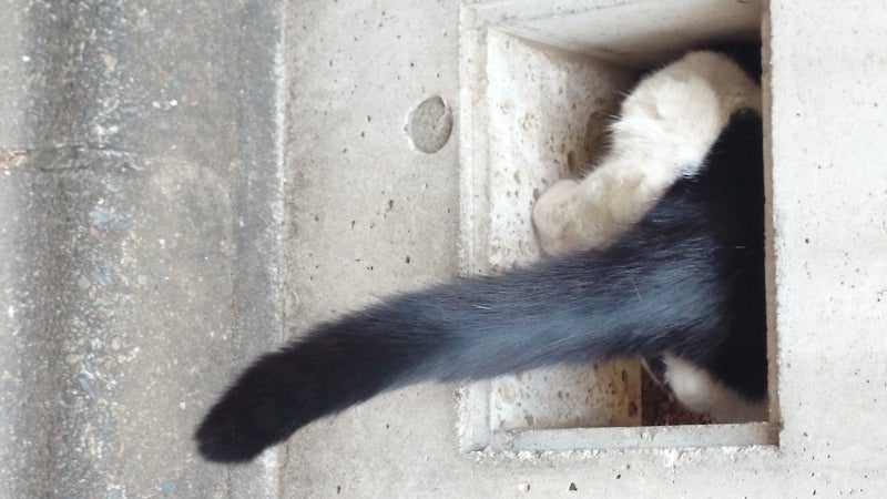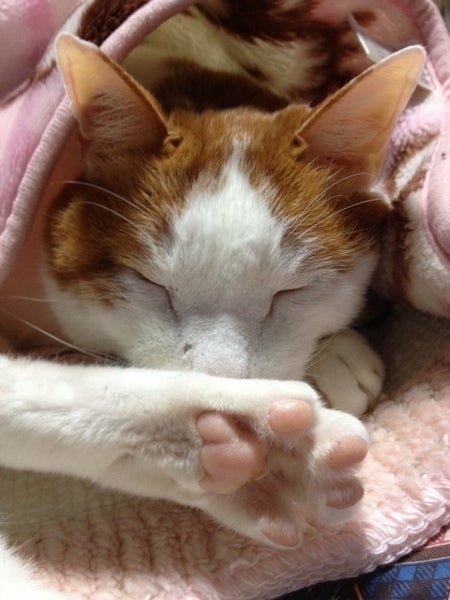ほぼにちは!わが家の猫、あずきさんです。庭の物置の裏でへその緒と胎盤つけたままでニィーと鳴いていたところを保護してから四年半。毎日元気に、ゴロゴロしています。