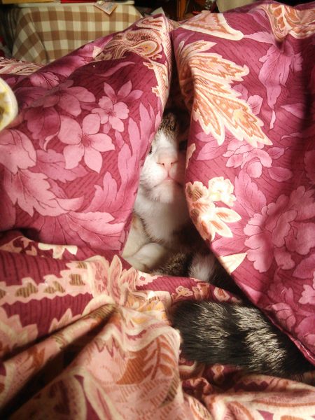 去年の今日は 3匹の写真を送りました。今年は1人になってしまいましたが、点滴しつつ元気にしています。羽毛ケットの中に潜ってるのと、美しい老婆のお顔です。美味しいご飯を食べて、元気に長生きしてね。