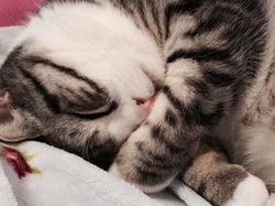 あー、私は仕事中だけど、家に帰ったらこんな風に寝てるんだろ〜な〜。私も寝たい…。