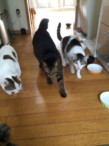 集まってくれたはいいが猫たちよこれはフルーツグラノーラです(仁尾智)