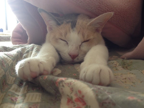 はな、生後六ヶ月。バンザイ寝が最近のお気に入り。