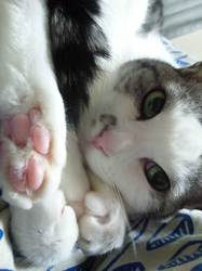 遊んでくれにゃいと化けてでるにゃ〜ってポーズのつくねちゃんです?
