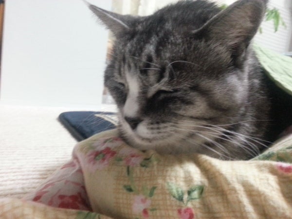 かりんちゃん、17才。アップでみるとしみじみおばあちゃんになった。今日も寝てなさいな。