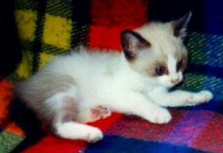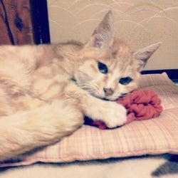 実家で飼っていた『ミーシャ』です。この写真は、家に来たばかりの頃。19歳で亡くなりましたが、今でも大好きです♪