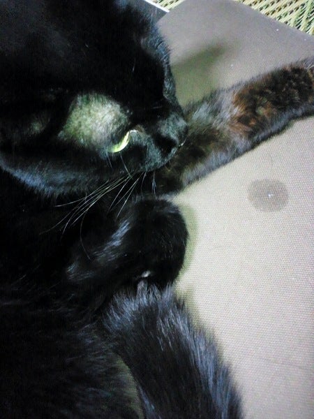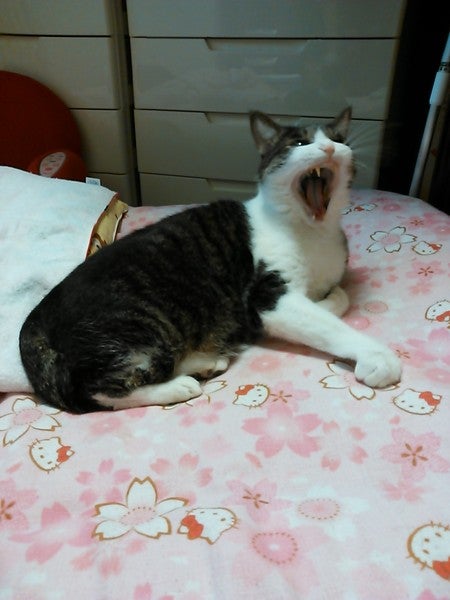 我が家の16さいのくうちゃん。起きたら…何かのあとが。恥ずかしいから知らん顔…。よだれは元気のバロメーター。
