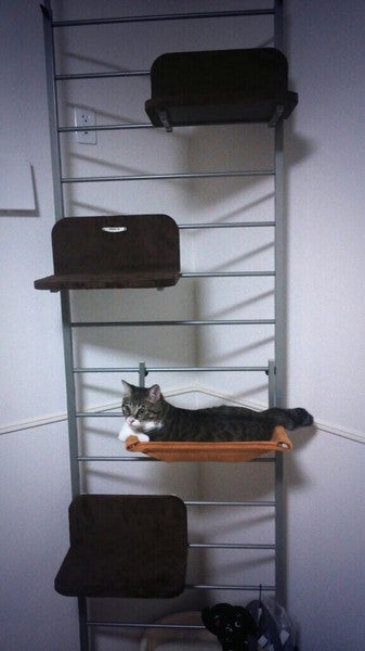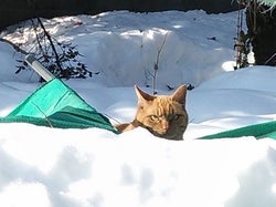 雪で倒壊したうちの物置にきたよそんちの猫にゃ