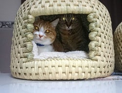 職人さんが2年かけて編んでくれた猫ちぐら!お気に入りの場所になりました!