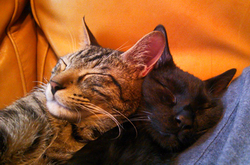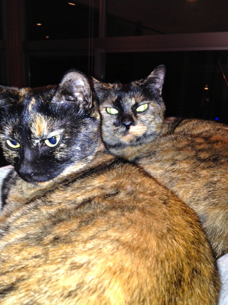 白黒が母猫。12歳、ハチ