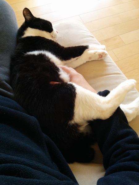 ハラを揉まれるのが好きだニャ!我が家のひじきさんはハラを揉まれることで至福を得ております。