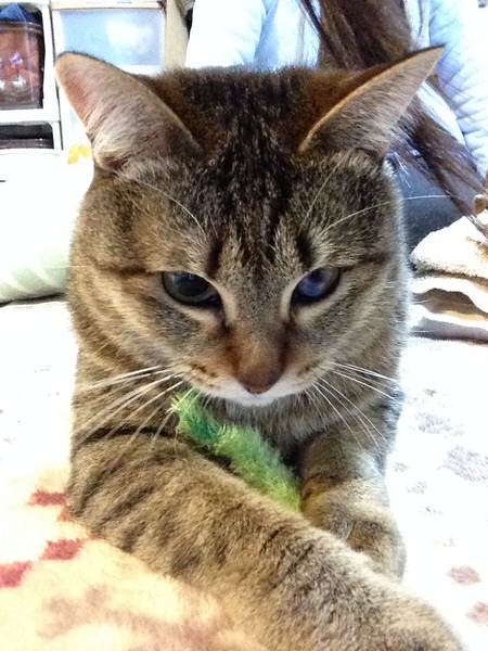 「これは渡さないにょだ」我が家のおてんば娘、ポコ様です。