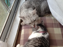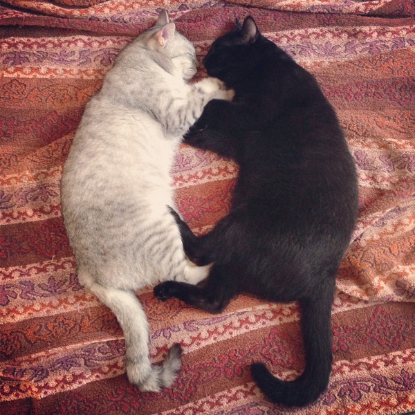 こんにちは。我が家のMeo(グレー)とMao(黒)です。