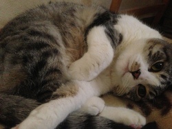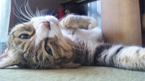 我が家の「ケィ」です。子猫の時にサークルKに取り残されてた子で、ケィ。元気に大きくなって、今では実家のアイドルですにゃー。