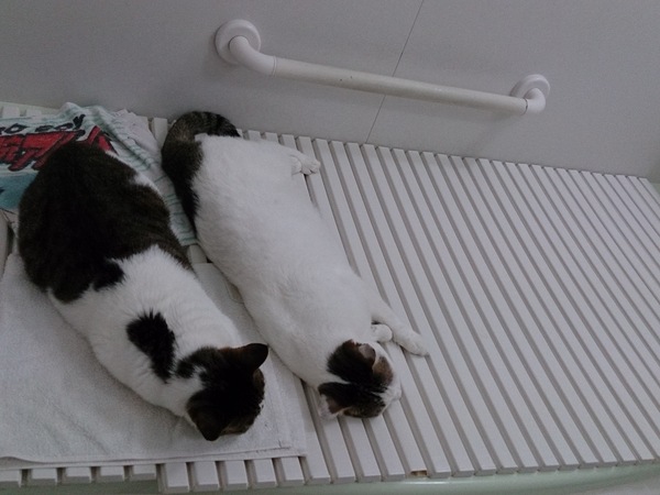 猫の日おめでとうございます!お風呂の蓋の上で寝る餅…ではなく猫姉妹です。