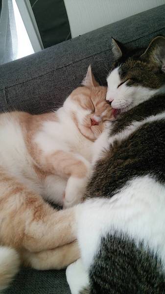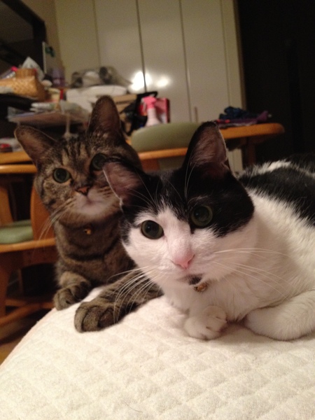 うちのとらとらちゃんとももちゃん。いつも追っかけっこばかりしてるけど、仲良くならんでパチリにゃん。