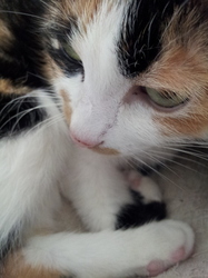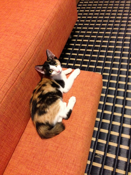 ねこの日、おめにゃ。8歳、三毛ねこ、はうる。今年一年も健康に元気にたのしくにゃ。