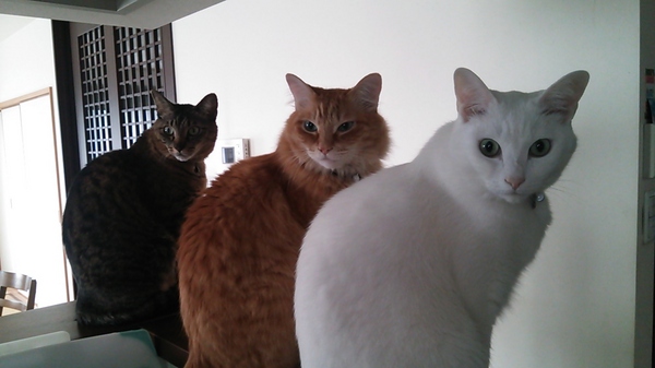 捨て猫3兄弟です(=^ェ^=)我が家に来た時は、歩けないくらい小さくて、三匹で両手の中にすっぽりだったのに…すっかり大きくなりました(*^^*)