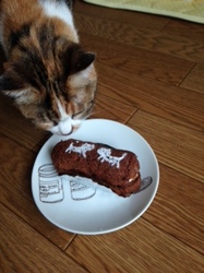 隣の街で買ってきたネコレア。猫の日を記念していただきます。ジュジュ、飼い主用だよ。さっき、ササミあげたでしょ。