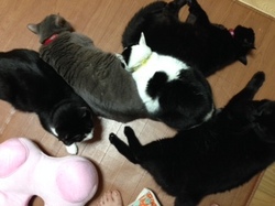 我が家の猫さん。3匹足りませんが…気持ち良くホカペでくつろぎタイム