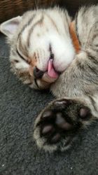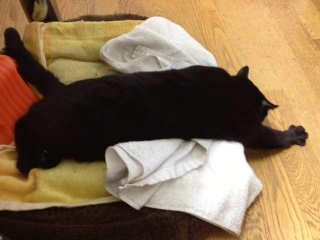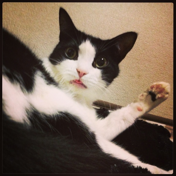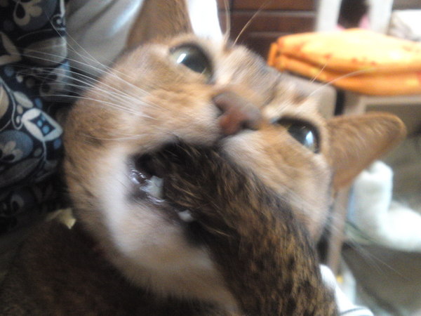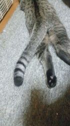 プーです。仔猫の時にシッポをおしゃぶり代わりにしていた癖で、未だに甘えたい時や眠い時に両手でシッポをしっかり持って、ガビガビやっています。