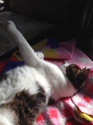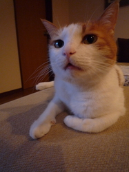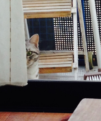 こんばんにゃ。わたしの名前は「いろ」日向ぼっこも終わったし、早くドア開けてほしいのに、ママ笑ってるんだもの。ほんと困っちゃうにゃ〜。
