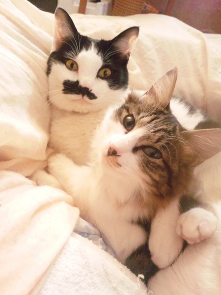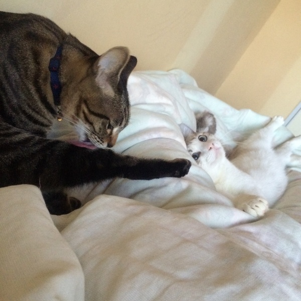 グルーミング中のお姉ちゃん「びいだま」を呑気に見つめるやんちゃ盛りな弟「エルビス」