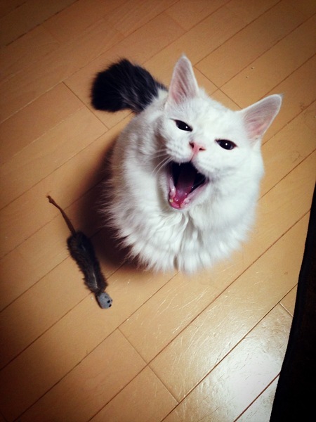 ネズミ獲って、余裕のあくび。猫の日ばんざい!