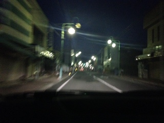 富岡の駅に向かいます。街灯と信号があかるく、とてもしずかです。