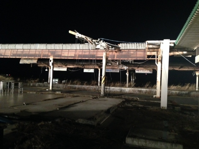 撮影かなにかで照明がたかれていたので夜の駅のようすを写真におさめることができました。