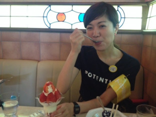 パフェを食べている