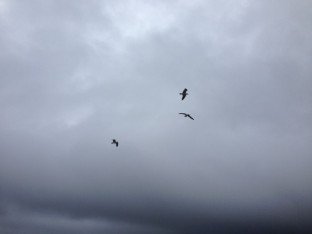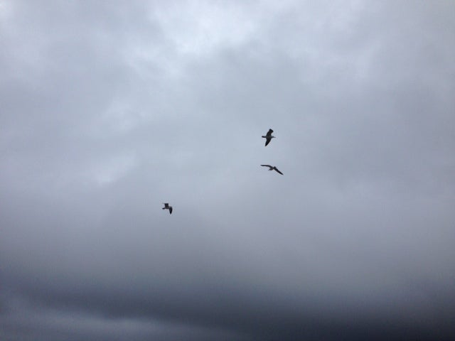 カモメがたくさん飛んでいます。