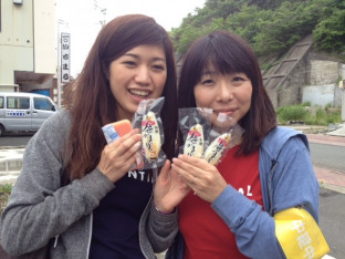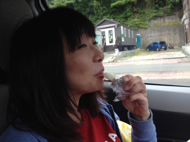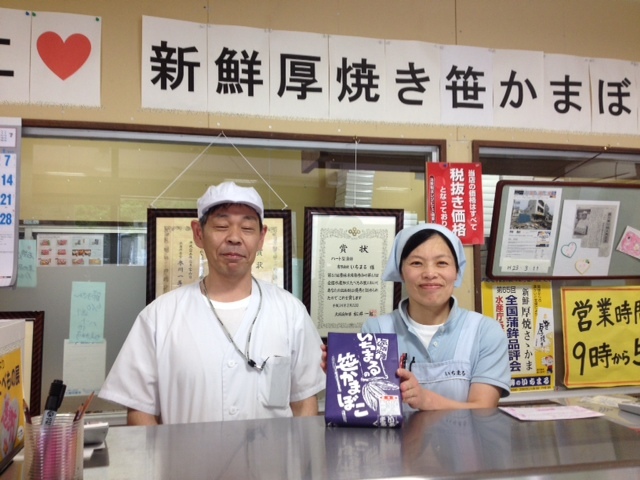 特製笹かまぼこを手にして満面なメイツ。いちまるさんの笹かまぼこはおいしい味がするんだ〜〜。車の中で早速食べたら、ふっくらしていながらも、味わい深く、それでいて香ばしさもある!とはスガノの弁です。同意です。いちまるさんのお店の方にもいろいろご説明いただき、ありがとうございました!