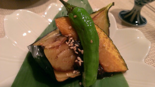 唐や班、賀茂なすをいただきながら、