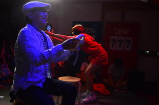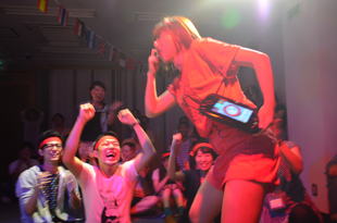 白熱のレース!さあ、最後のカーブを曲がって、ゴールが見えてきた!そのまま行くか、大逆転か‥‥。「行けーーー!」「行けーーー!」フィニッシュ!!!!勝ったのは‥‥?ゆーーーないとーーーー!ヤングチーム、優勝ーーー!