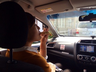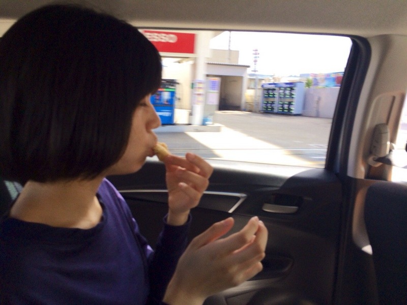 車中で食べ始めました。