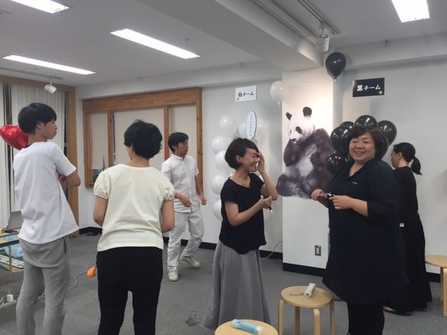 アダルトチームは黒い風船を持ち、