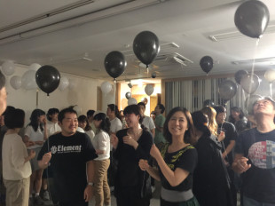 ヤングチームは白い風船を持って