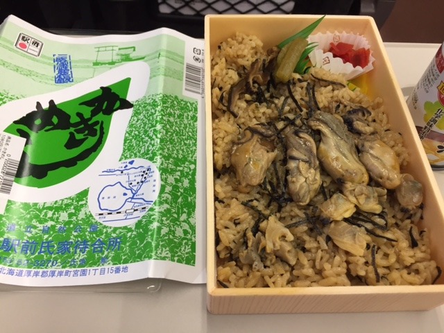 北海道は厚岸郡、厚岸駅のかきめしです。
