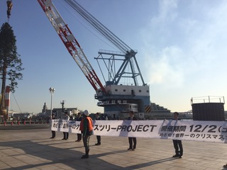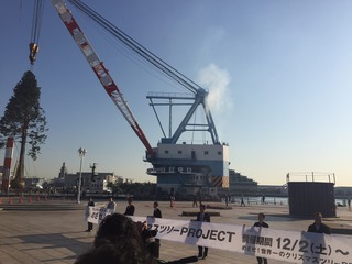 船のクレーンでぐるっと回転させて、