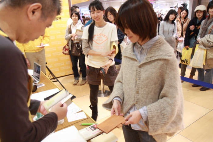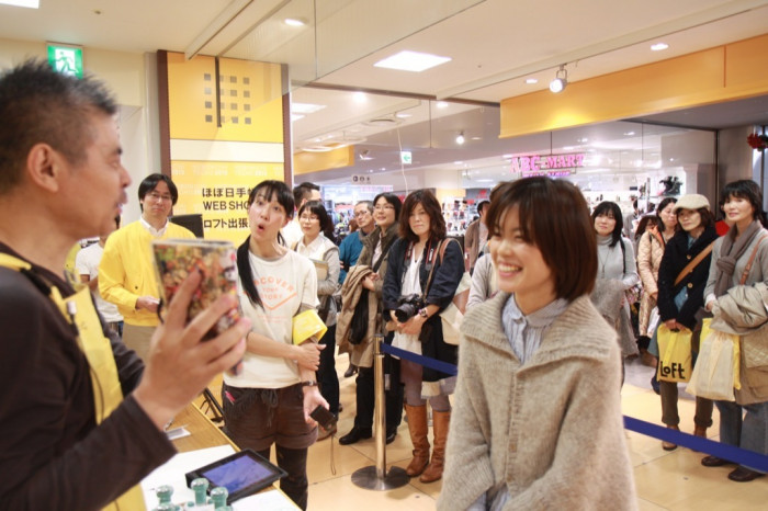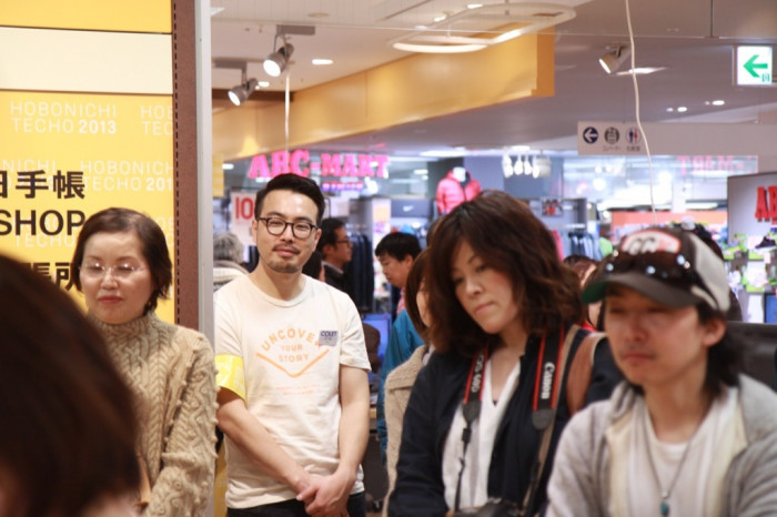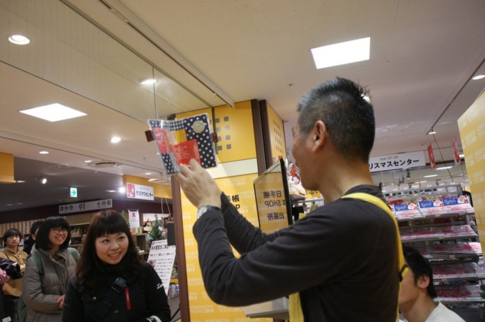 お客さまたちと糸井の様子を見守る手帳リーダー、