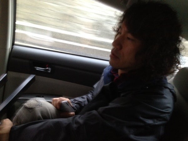 後部座席にあぐらをかいて