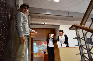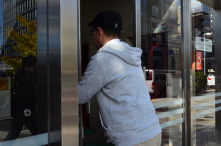 「ほぼ日」オフィスのエントランスで