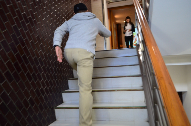 そうです、この階段を上がってください。