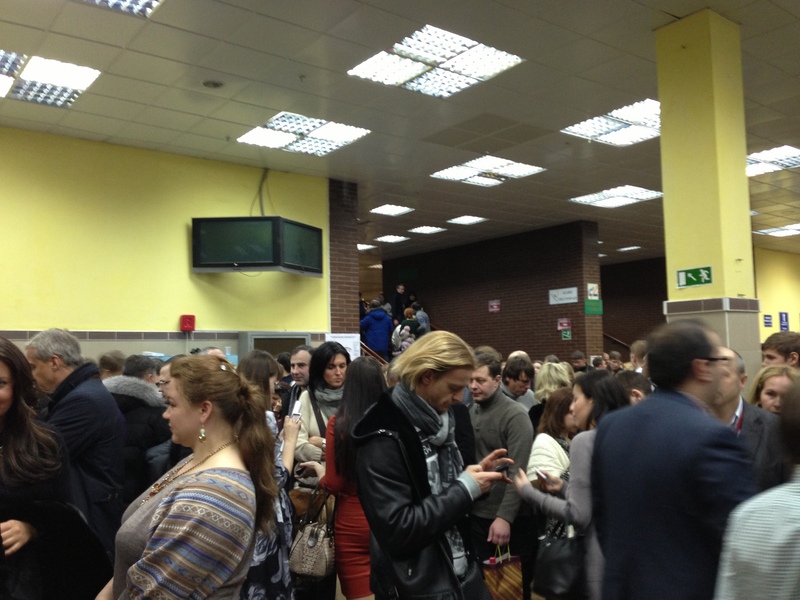 Wi-Fi機器の電源が切れてしまい更新が途切れました、すみません。こちらは『イモータル』が終わったばかりの会場ロビーです。熱気にあふれています。ロシアの人たちは「あんまり笑わないよ」「何ごとにも反応が冷静だよ」とみなさまから教えていただいていましたが、『イモータル』の会場ではぜんぜん、そんなことありませんでした。バレエや体操が盛んな国だからか、ダンスシーンに拍手が大きかったなぁ。みんな「ブラボーブラボー」でした。