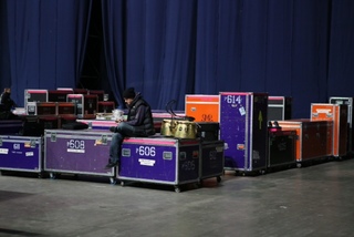 さて、二枚目。 機材ケースに座るスタッフ。 こういうの、撮っちゃうなあ。好きだなあ。